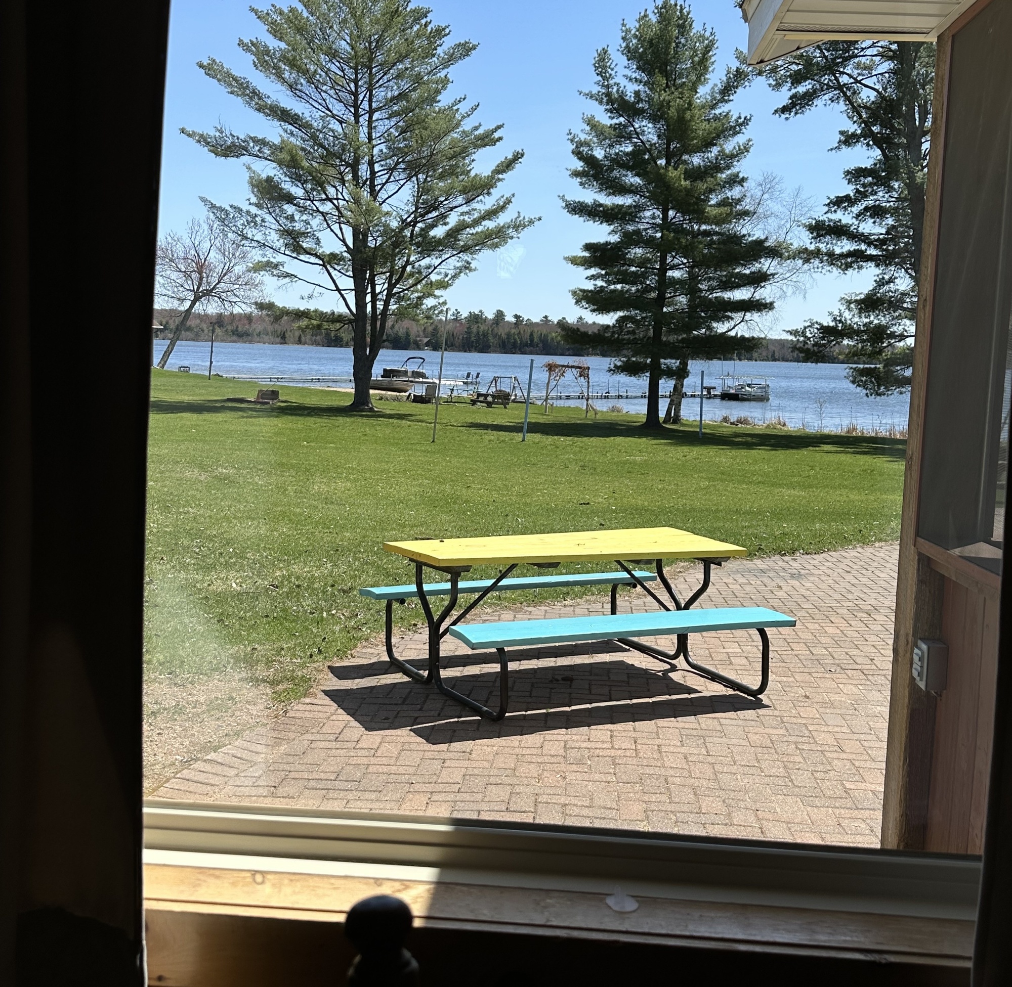 2 double beds, 2 single beds, microwave, TV, ceiling fans, fold-out couch, and a screened porch.